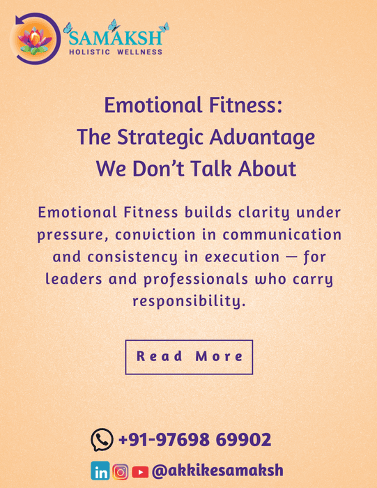 At SAMAKSH, everything begins with emotional clarity — the ability to stay steady, aware, and responsive when pressure rises, rather than getting pulled into emotional noise. As clarity deepens, inner agency strengthens. Leaders begin to choose their responses consciously, hold their ground, and act with intent — even in demanding moments. Over time, this creates mind–body alignment, where thought, emotion, and energy support calm, decisive leadership.